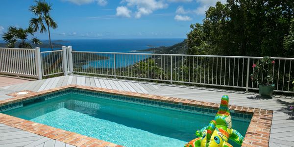 This vacation rental by owner is a beautiful two story villa which offers 4 bedrooms, 3 bathrooms with two outdoor showers, media room with futon, large living room and dining area, and a beautiful in ground pool with a million dollar view of Coral Bay and the Caribbean! There is plenty of room for multiple couples to enjoy vacation time together in the open concept living, dining, and kitchen areas while each bedroom also has individual entrances for privacy. It comfortably accommodates 8 people.